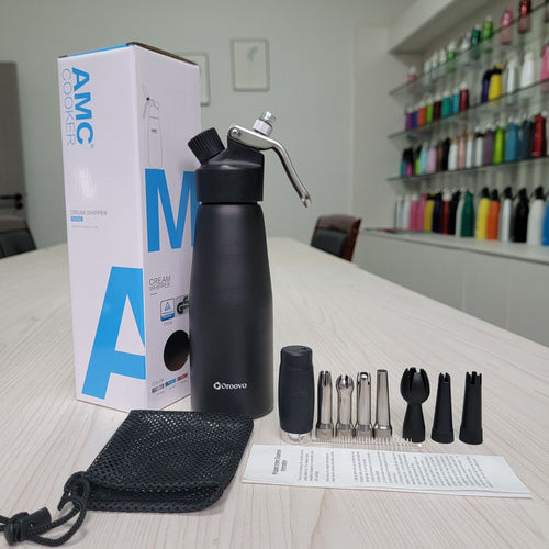Oroovo Professional Aluminum Whipped Cream Dispenser 500ml / 1 Pint – Leak-Proof Whipped Cream Maker with 4 Stainless Steel & 3 PP Decorating Nozzles, 2 Cleaning Brushes – Heavy Duty Cream Whipper – N2O Chargers Not Included